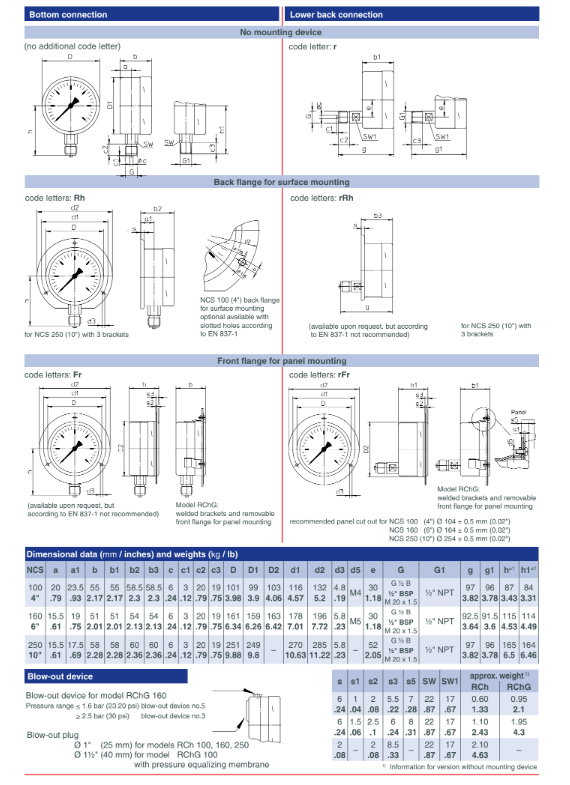 NCS 100 (4″): S1 pressure gauges with blow-out device