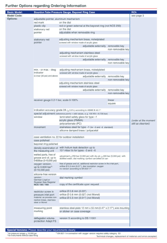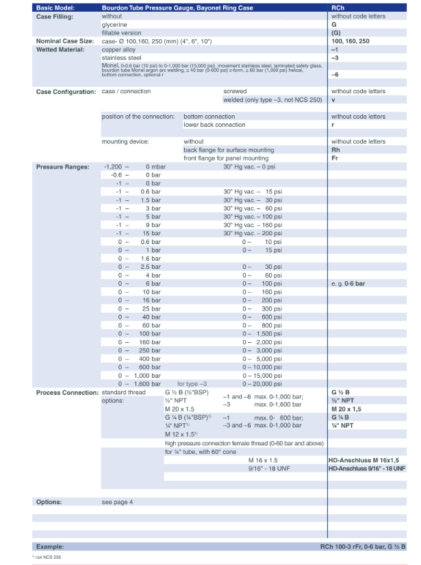 model RChG 160 (pressure ranges > 2.5 bar and above)